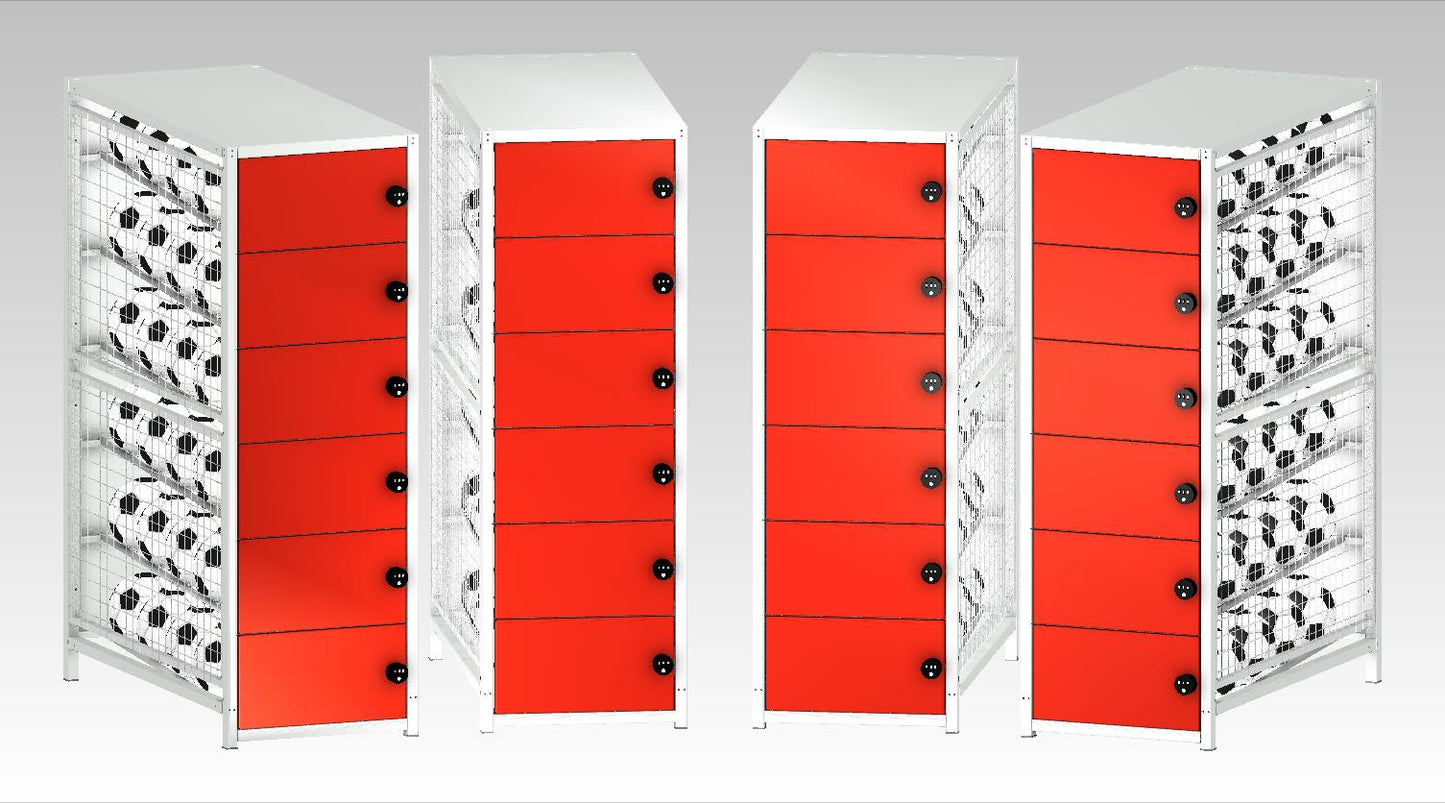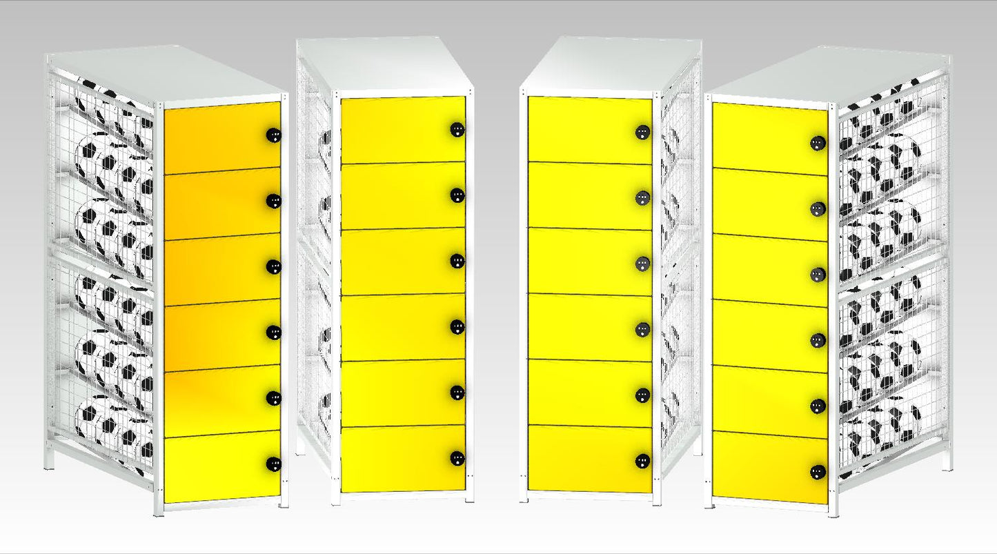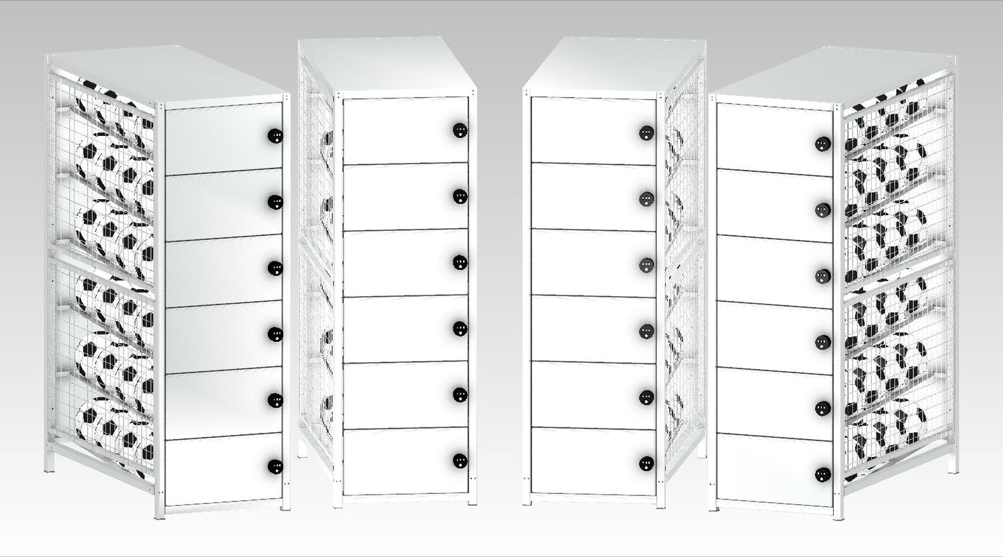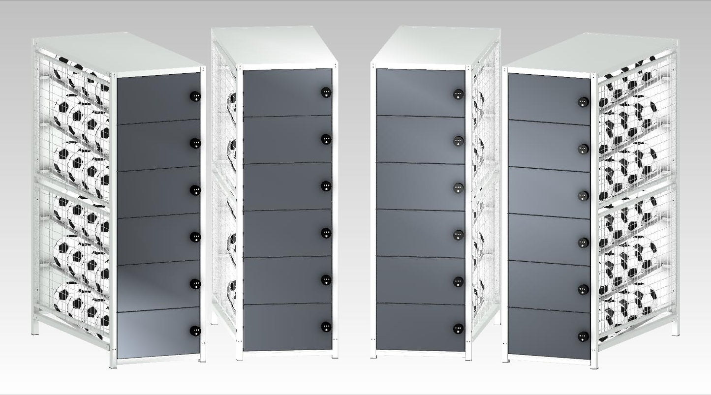 Mit dem BallLocker M – 4er Set in Lichtgrau (RAL 7035) erhältst du vier stabile und funktionale Ballschränke, die ideal für Vereine, Schulen oder Sporteinrichtungen sind. Jeder Spind bietet Platz für bis zu 60 Bälle, sodass im Set insgesamt 240 Bälle sicher und ordentlich verstaut werden können. Diese BallLocker bieten deinen Teams eine einfache Möglichkeit, ihre Bälle zu organisieren und vor Diebstahl zu schützen.